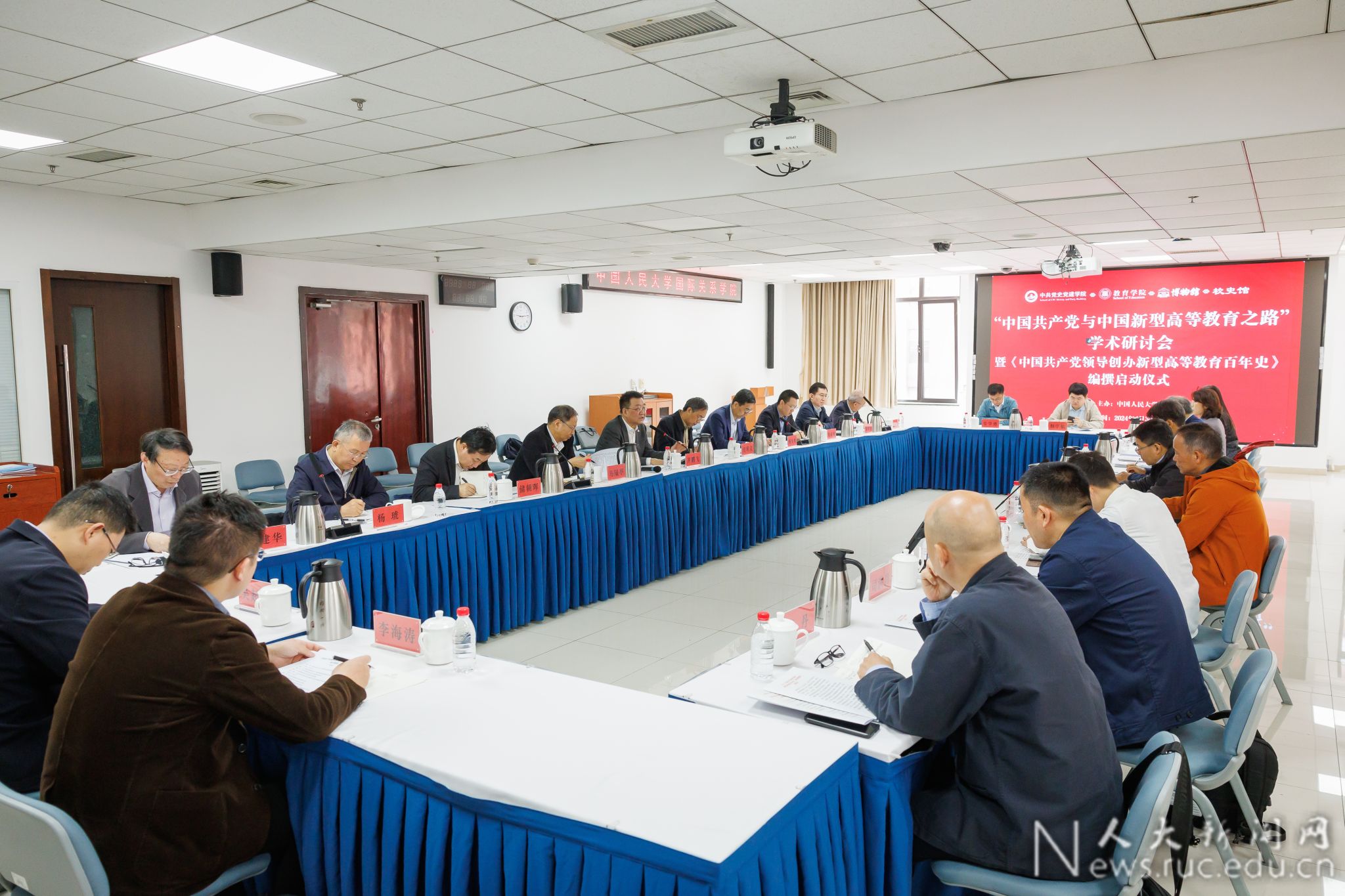 中国人民大学党委副书记齐鹏飞出席会议并致辞,中国人民大学中共党史党建学院院长杨凤城主持启动仪式,来自中共中央党校(国家行政学院)、中国高等教育学会、中国教育科学研究院、国家教育行政学院、北京大学、清华大学、中国科学院、南京师范大学、山东大学、浙江大学、中国历史研究院、北京理工大学、西安翻译学院等十多家单位的专家学者参加研讨。
