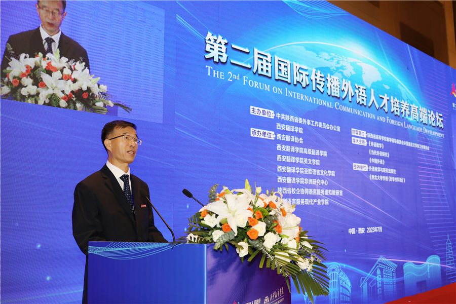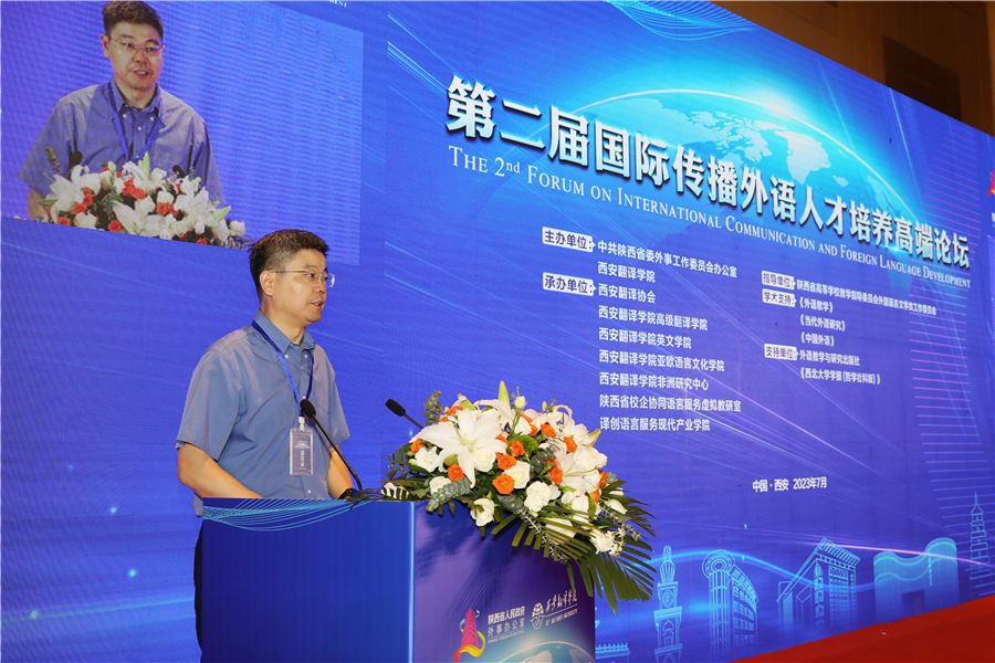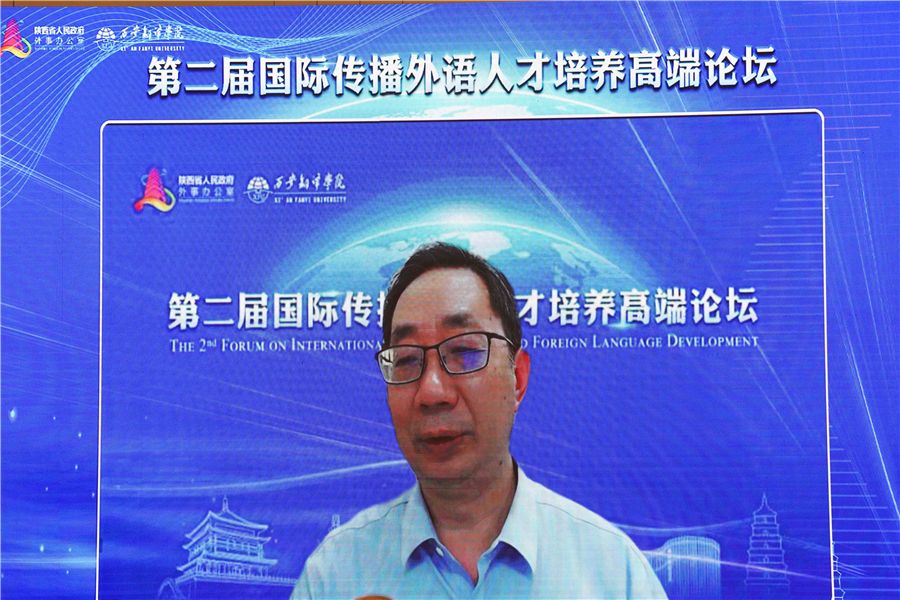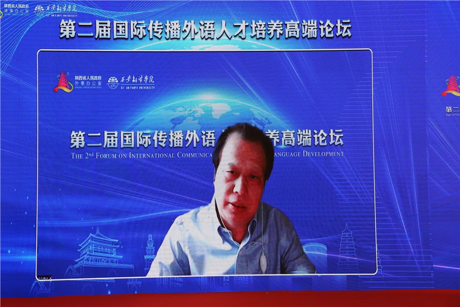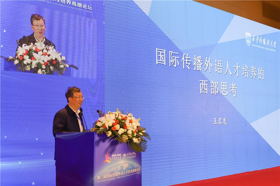 教育部长江学者、西安外国语大学王启龙作题为《国际传播外语人才培养的西部思考》主旨发言