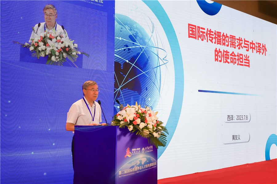 中国译协常务副会长、中国翻译研究院副院长黄友义作题为《国际传播的需求与中译外的使命担当》主旨发言