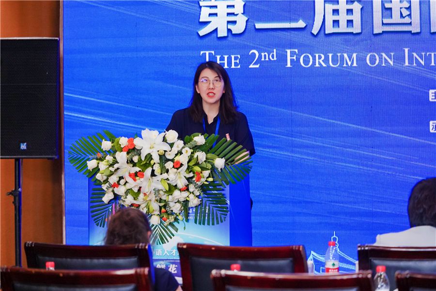 中国外文局翻译院国际传播部副主任、主任编辑贺潇潇作题为《我国翻译人才关键语言和区域国别学关联培养策略分析与建议》主旨发言