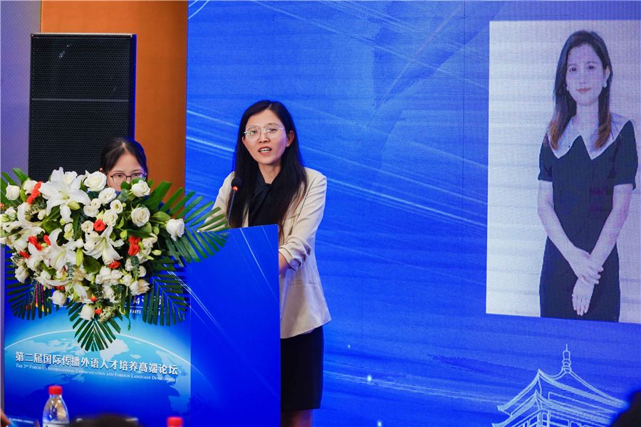 西安外国语大学高级翻译学院副院长赵毅慧作题为《国际传播视域下高端翻译人才培养创新模式探索》主旨发言